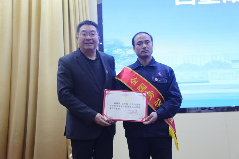 发挥“传、帮、带”作用,不仅体现在余军伟工作中的“师带徒”,更体现在他言传身教,激励母校学子坚定技能报国理想。2020年12月,他回到母校,在“全国劳动模范座谈交流会”“军工文化大讲堂”上,畅谈自己扎根一线、攻坚克难的执着和坚守,他的学习经历、成长之路、工作成绩、奋斗精神等,成为同学们走向技能成才之路最生动、最亲切、最令人信服的教材。
