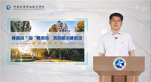 近日,河南交通职业技术学院2018级返校同学在庄严嘹亮的国歌中开启了“复学第一课”。把灾难当教材,以战“役”为素材,学校党委书记曹焱、院长刘志伟、副院长李松涛先后“出镜”授课,师生通过观看线上视频,开展线下活动,共同完成了理想信念教育、科学道德教育和生命安全教育。