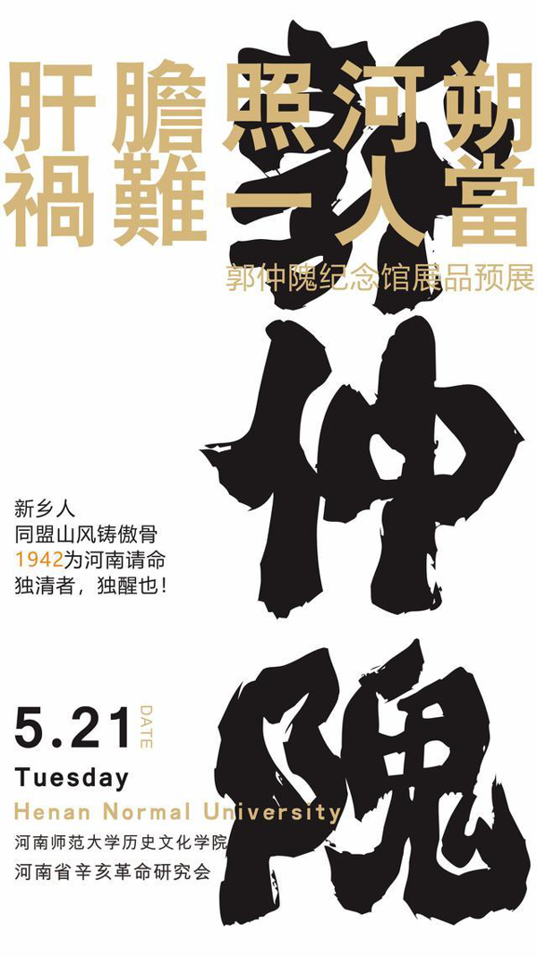 由河南师范大学历史文化学院主办、河南省辛亥革命研究会承办的“辛亥元老郭仲隗纪念馆藏品预展”将于2019年5月21日在河师大举办。