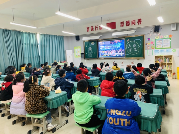 ——郑州中原区西悦城第一小学组织学生观看“天宫课堂”