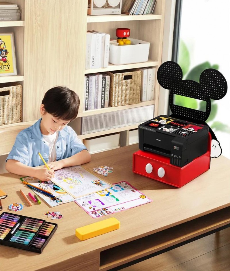 “米斯卡,木斯卡~”奇妙咒语念出口,新学期空间收纳不用愁!爱普生与迪士尼联合推出的米奇收纳妙妙屋,无疑是孩子们学习空间的点睛之笔。这款业界创新的打印机收纳柜完美适配爱普生打印机,还融入了迪士尼正版授权的米奇元素,童趣满满,可爱造型让学习空间秒变童话乐园,让收纳像有魔法一样简单。