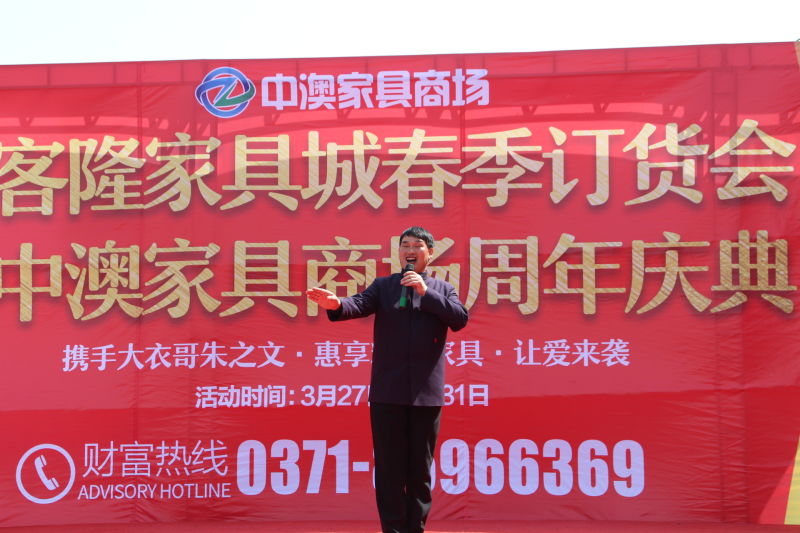 开幕式上,万客隆家具城和河南中澳智能科技有限公司的领导分别介绍了一年来的发展情况,随后丰富的文艺节目表演吸引了大批客户驻足观看,“大衣哥”朱之文倾情演唱成名曲《滚滚长江东逝水》更是把订货会推向一个又一个高潮。