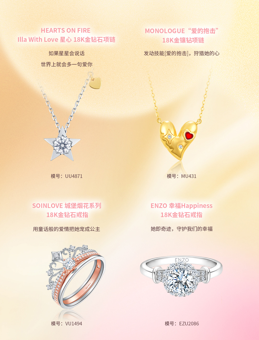 在“周大福官方商城、天猫周大福官方旗舰店、天猫周大福钻石旗舰店、京东周大福官方旗舰店、京东周大福钻石旗舰店、周大福唯品会珠宝店、周大福智慧零售工具云商365、云柜台、Smart Tray智能奉客盘及D-ONE周大福定制、周大福会员中心小程序”多重钻石品类营销活动及会员礼遇,懂得你爱ta的心意,具体活动内容,详见平台规则推送界面。