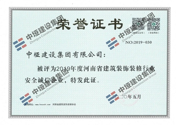 细节的严格把控,成就品质的辉煌;严苛的安全标准,确保项目的规范;近日,中垭建设集团在“2019年河南省建筑装饰装修协会评选中”,荣获“质量诚信企业”、安全诚信企业”称号;同时集团董事长徐孔森先生获得“诚信企业家”殊荣、集团多个项目经理被评选为“诚信项目经理”,可谓实至名归。