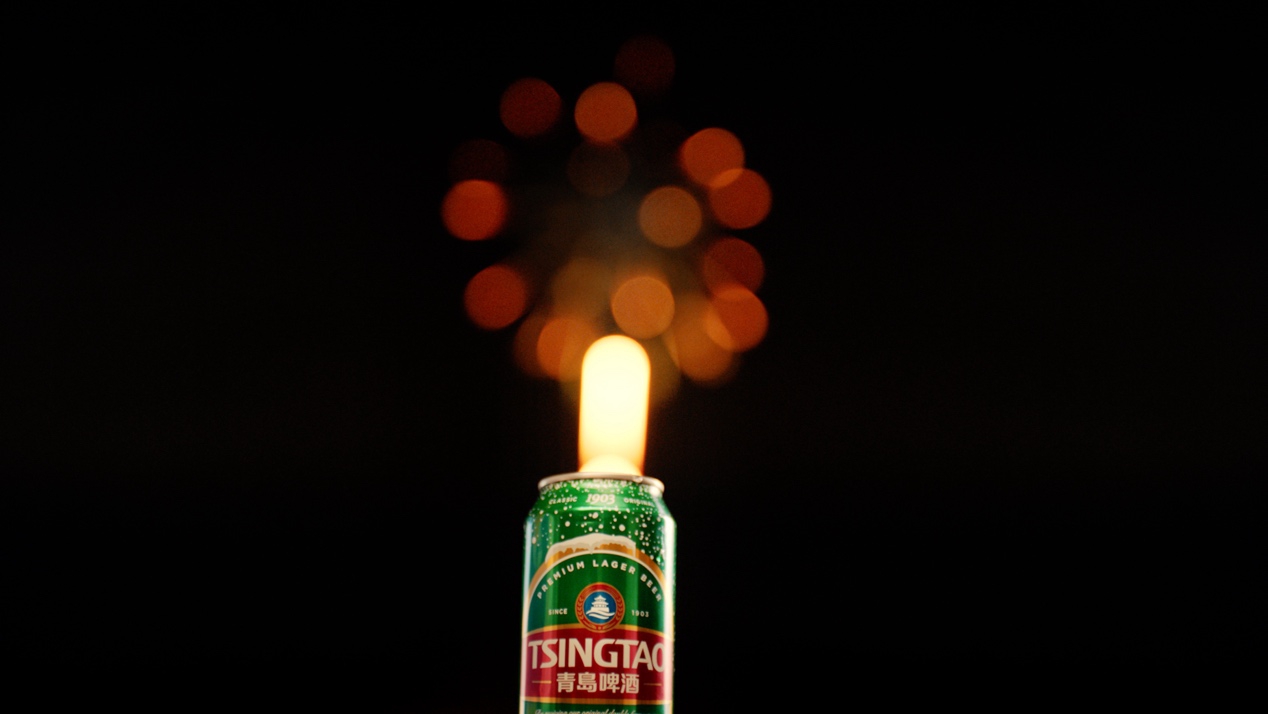活动现场,8盏啤酒礼花错落有致地装置在空旷的草地上。花火下,年轻人坐在露营帐篷前观看过往赛事,举杯庆祝,摇旗呐喊。伴随着青岛啤酒一罐罐被拉开的声音,他们伸出手臂,在空中划圈,用绽放的手势开启这场浪漫的啤酒礼花秀。一束、两束,越来越多的礼花从巨型啤酒罐内腾空,在夜空依次绽放,足足持续了60分钟,打造一场既浪漫又震撼的奥运应援。