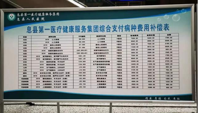 日前,河南息县推出一套医改的新模式,可以解决医院“小病大治”问题。在息县人民医院,我们见到一个“综合支付病种费用补偿表”标牌,列有若干常见病的各种收费标准及个人应付数目。