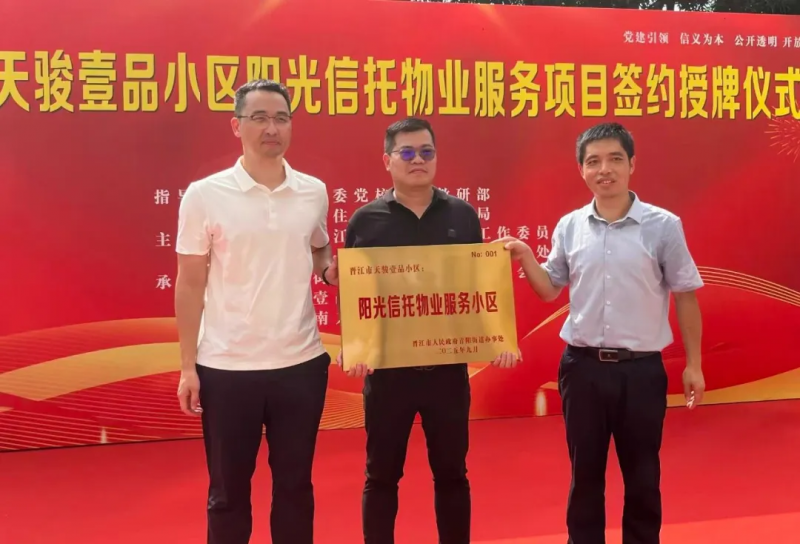 2025年9月30日,福建省晋江市青阳街道莲屿社区天骏壹品小区举行阳光信托物业项目签约授牌仪式,标志着福建省首个信托制物业小区正式落地,为全省基层社区治理机制探索提供了 “青阳样板”。