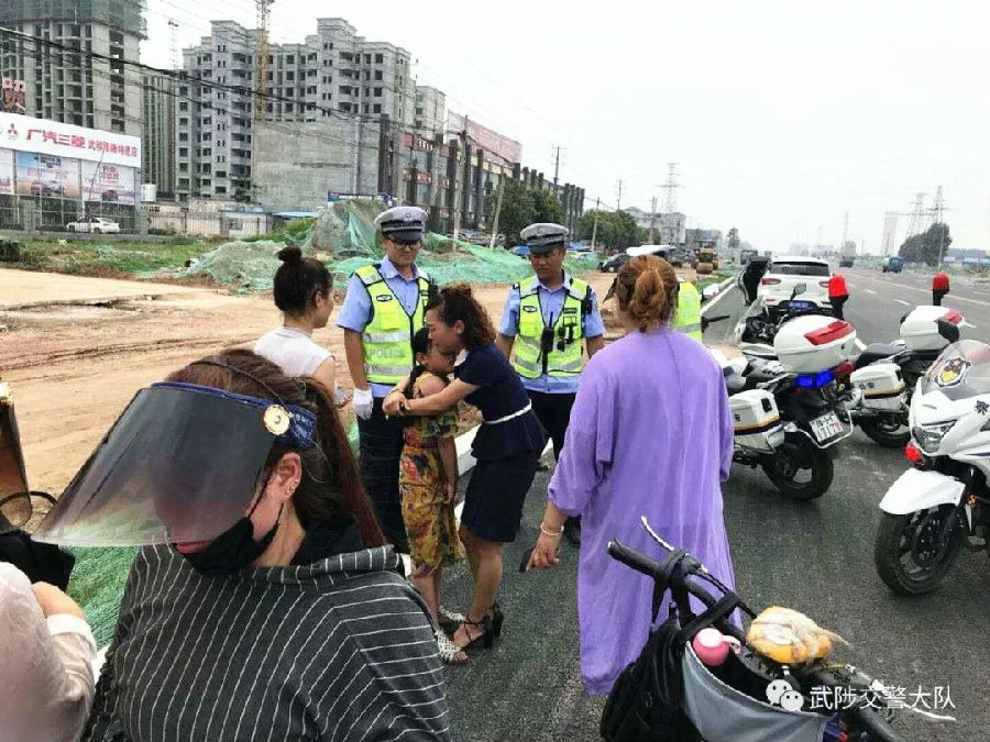11时59分,骑警队员孙凯、张千帆行至迎宾大道与尚德路交叉口时,发现一个身穿棕色裙子的小姑娘,眼神凄迷,低头茫然无助地走着。上前询问,小姑娘说在找妈妈,不知道妈妈开车去哪了。问其姓名和住址,正是大家苦苦寻找的安某某!获悉姑娘找到后,秦女士和家人火速赶来,母女相见,抱头哭泣。