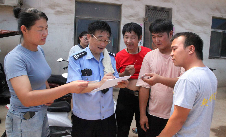 8月11日星期六,虽然已过立秋天气,当地气温仍然居高不下。上午九时许,该县车管所民警按照下乡计划,早早来到龙泉办事处北贾村。由于村里临时有其他活动,“流动车管所”被安排到到村南一个旧工厂的厂区开展工作。一听说“流动车管所”下乡办证,消息像长了翅膀迅速扩散,不一会便有五十多人前来报名,一位年过六旬的老人也徒步过来,为在外地打工的孙子打听补办驾驶证需要那些手续。