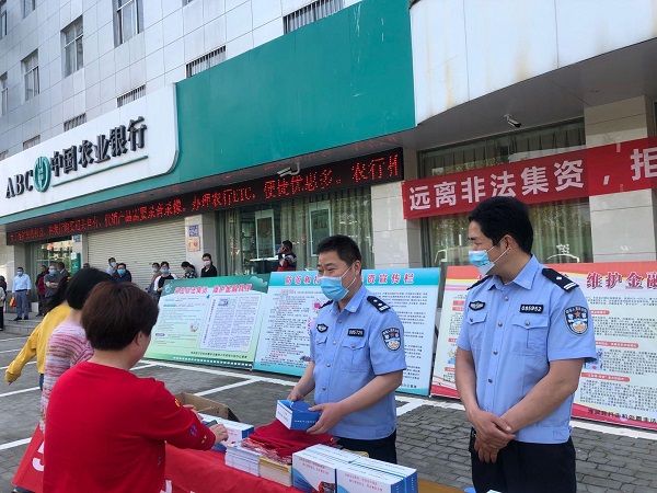 2020年5月15日上午,河南省淮滨县公安局经侦大队联合县处非办和农业银行淮滨支行等金融机构,在县农业银行前开展了以“与民同心 为您守护”为主题的系列宣传暨“5•15”打击和防范经济犯罪宣传季活动启动仪式。