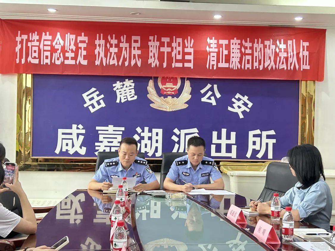 某公考法务部代表人向长沙市公安局岳麓分局咸嘉湖派出所赠送锦旗表示感谢