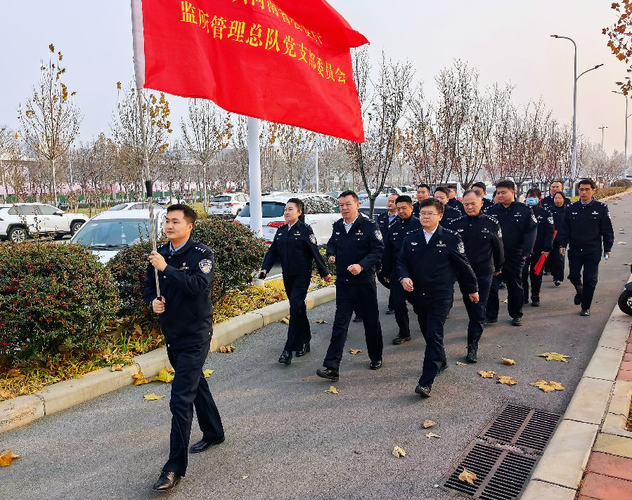 冬阳铺展初心之路,清风激荡奋进豪情。12月11日下午,河南省公安厅监管总队全体党员民警着装严整,列队整齐,在总队长王磊率领下,迈着矫健的步伐前往郑州工商学院,与该校党委书记杨培等领导汇合,以“沉浸式研学+警校共建”模式,开展主题党日活动。此次活动锚定“传承红色基因、锤炼党性修养、凝聚奋进力量”核心目标,让党员民警在精神溯源中筑牢忠诚警魂,在思想淬炼中强化使命担当。