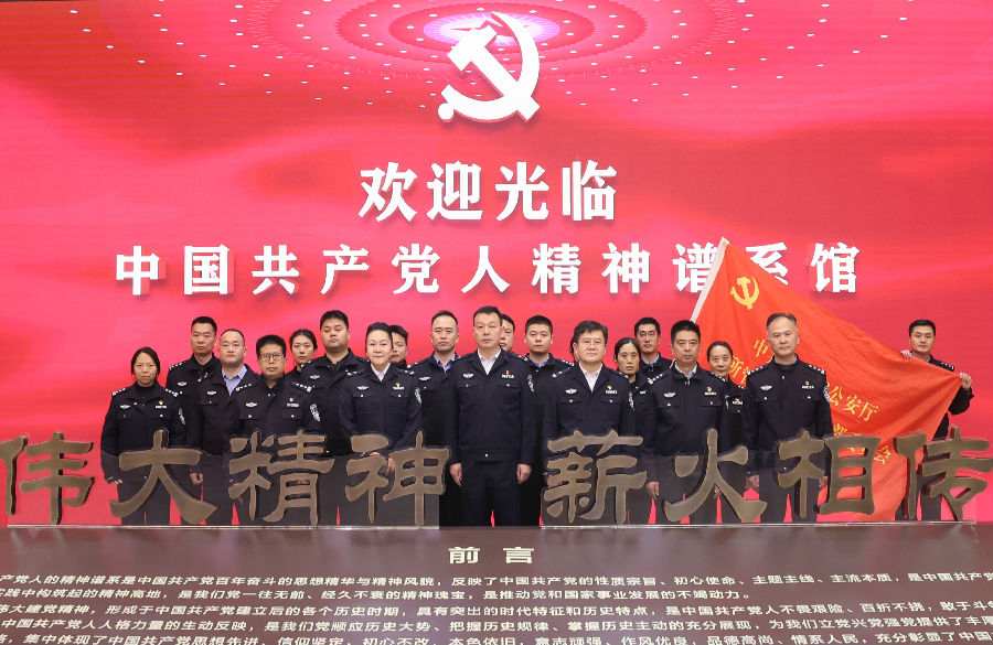 步入庄严肃穆的"中国共产党人精神谱系馆",仿佛穿越百年风雨征程。展馆以"精神长河"为脉络,通过详实史料、生动影像、珍贵实物,系统铺展中国共产党在革命、建设、改革开放、新时代等各个时期孕育的精神瑰宝。在讲解员引导下,大家循着“开天辟地·建党伟业”“艰辛探索·建设征程”“改革开放·时代新篇”“伟大复兴·精神引领”四大展区次第前行,从井冈山精神的星火燎原到长征精神的百折不挠,从延安精神的艰苦奋斗到抗美援朝精神的保家卫国,从“两弹一星”精神的自主创新到改革开放精神的敢闯敢试,再到脱贫攻坚精神的众志成城、抗疫精神的逆行而上、载人航天精神的逐梦苍穹,一幅幅历史画卷徐徐展开,一股股精神力量直抵人心。党员民警驻足凝视、真诚交流,在光影交错中感悟精神谱系的一脉相承和与时俱进,深刻领会中国共产党人“为中国人民谋幸福、为中华民族谋复兴”的初心使命,将红色基因融入警营血脉。