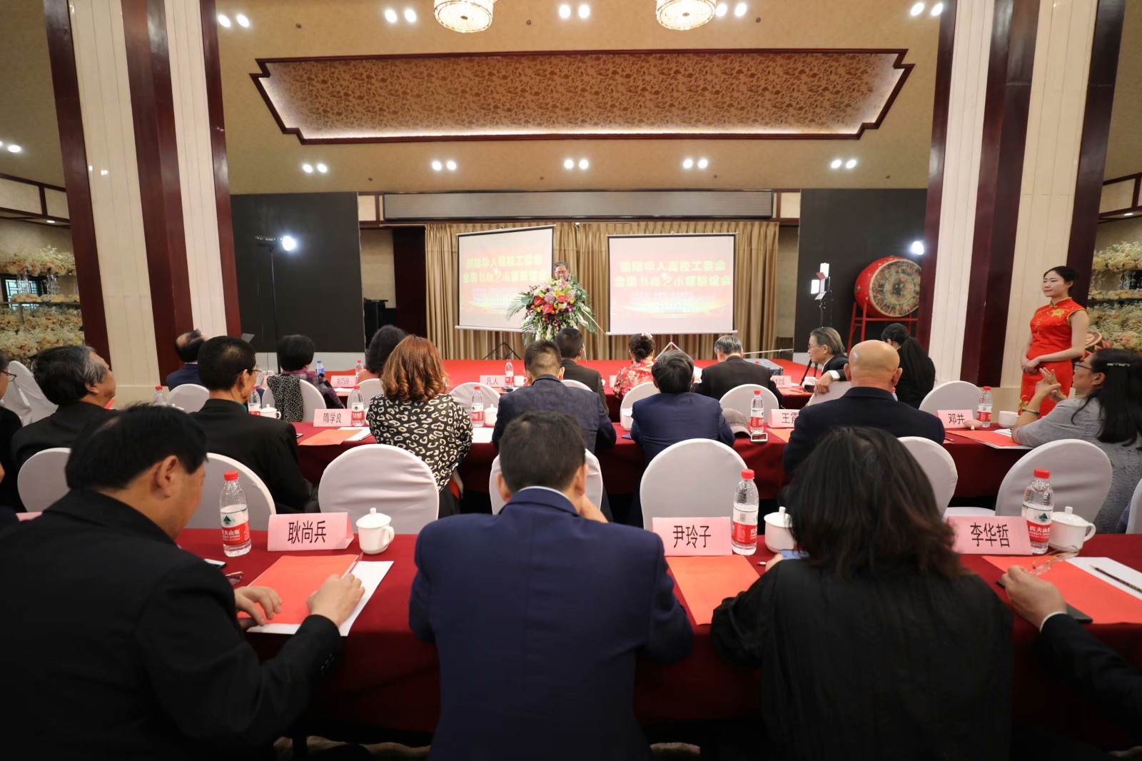 群贤毕至,胜友如云,国际华人高校工委会暨全国书画艺术家联谊会上,汇集海内外的中ˎ美ˎ日ˎ韩等国书画大家欢聚一堂。