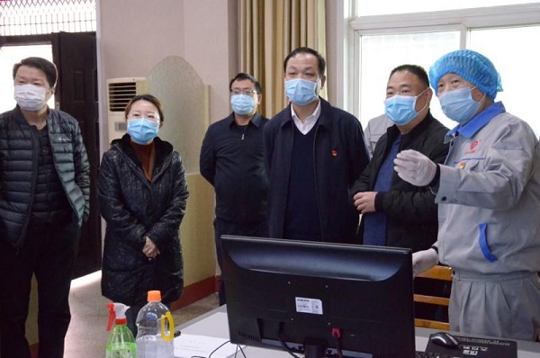 在鲜拌面厂,乔彦强一行仍然经过严格的消毒程序后才进入厂区。大家首先走进仓库进行查看,偌大的库房没存多少产品。鲜拌面厂生产厂长陈丽娜介绍说,企业复工后产品一直供不应求,并介绍了产品的种类及销售情况。王保杰拿起一盒凉面,向乔彦强介绍了产品的保质期和食用方法。在监控室,乔彦强一行通过大屏幕了解了产品的工艺流程等情况。“疫情对咱们这个企业的复工有什么影响?”对乔彦强的询问,王保杰介绍说,有一定影响!企业的部分员工是外省的,现在没法返岗上班。另外,南街村在湖北还有两个分厂,现在也没法开工。乔彦强指出,员工没法返岗,要落实清楚具体情况,企业要想方设法,使条件允许的员工返岗。“企业现在有什么困难?”“主要是交通运输上,很不方便,产品根本送不到疫区。”