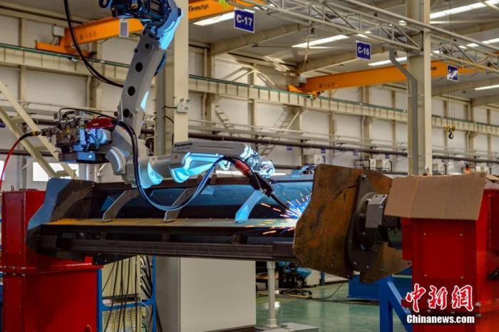 资料图:机器人正在自动焊接。 中新社记者 田雨昊 摄