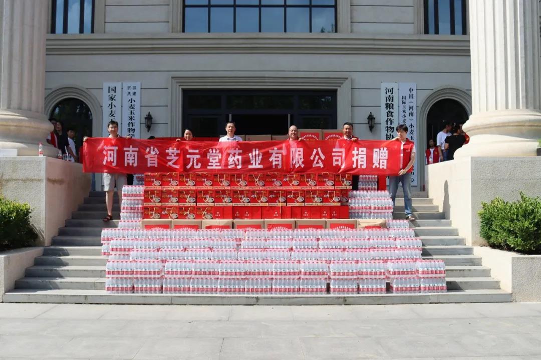 7月24日下午,芝元堂一辆满载20余吨的救灾物资货车抵达河南农业大学农学院,农大校长介晓磊、校党委委员农学院党组织书记郭战伟、院长王道文、副书记王建忠、副院长李浩贤、程西永等校领导出席本次捐赠,方城县人民政府副县长薛党勤、县人大财经委员会主任相天俊、县工信局副局长王振军、芝元堂药业运营中心总经理毛骞等政企领导前往捐赠。