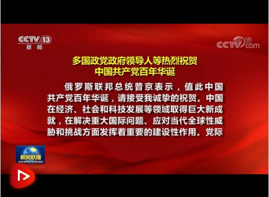 在中国共产党百年华诞来临之际,多国政党、政府领导人致电致函习近平总书记和中共中央,表达热烈祝贺,高度评价中国共产党建党百年来特别是党的十八大以来,在以习近平同志为核心的党中央坚强领导下,中国各项事业取得的发展和进步。