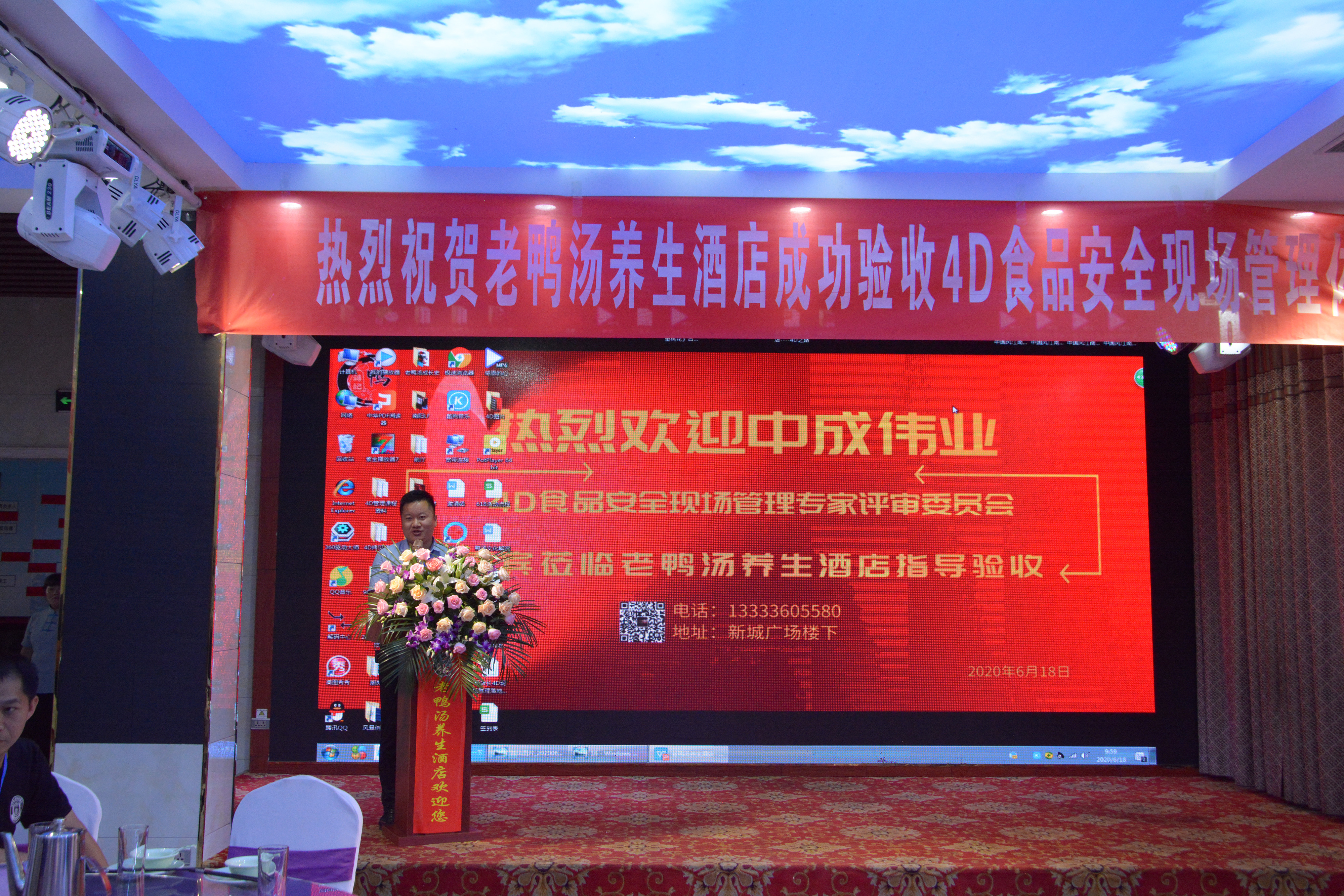 4D食品安全现场管理体系落地期间的优秀员工分享了自己的心路历程,对家人的关心少了,每天忙得吃不上饭,媳妇洗的干净衣服每天污染的脏兮兮的,说到动情处不禁流下了眼泪……功夫不负有心人,在大家的共同努力下,中成伟业河南公司总经理、4D金牌讲师车涛老师宣布老鸭汤养生酒店通过了此次4D导入的考核。向老鸭汤养生酒店董事长蒋义周颁发荣誉证书!