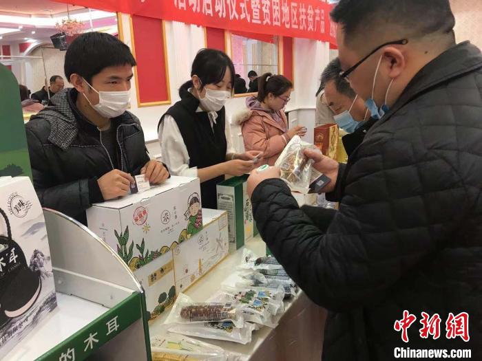 山西省“消费扶贫校园行”活动启动仪式暨贫困地区扶贫产品“进校园”展销会在太原举行。 杨静 摄 中新网太原12月4日电 (杨静)“扶贫产品进高校,鼓励引导山西高校加强与贫困地区农产品产销对接,以消费促进贫困群众增收,打造高校带头示范、社会各界广泛参与的消费扶贫新格局。“12月4日,山西省教育厅安全稳定工作处处长武振杰如是说。