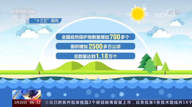 与此同时,我国自然保护地体系建设稳步推进。“十三五”期间,全国自然保护地数量增加700多个,面积增加2500多万公顷,总数量达到1.18万个。