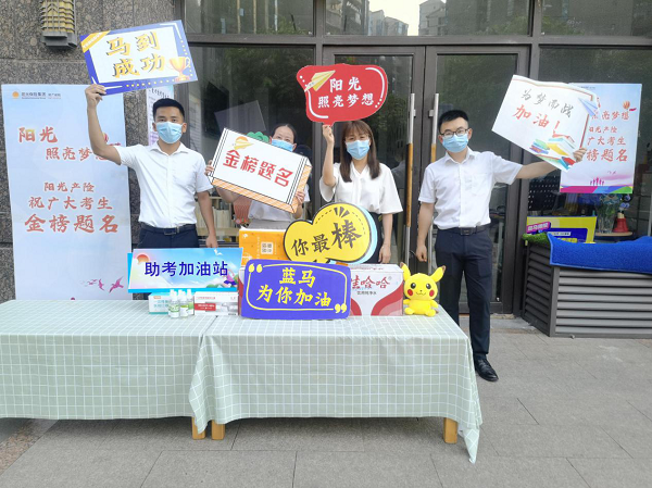 阳光财险在全国多个高考考点设置爱心服务站,为广大考生及考生家长提供消毒液、口罩、消毒湿巾、一次性手套、饮用水、纸巾、应急文具等物品,为他们送上最贴心的后勤保障。