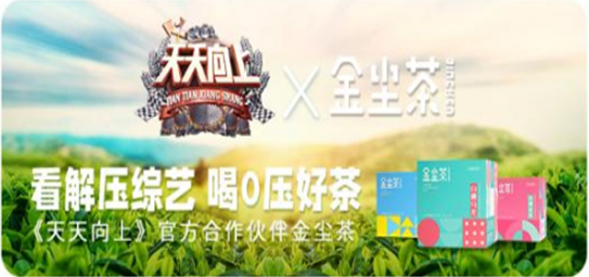 除了产品本身,金尘茶作为行业新秀,在如何与年轻人更好互动上,也下足了功夫。其首次亮相,选择的就是更贴近年轻群体的湖南卫视王牌综艺《天天向上》。借势顶尖传媒平台的影响力,收割海量粉丝群体,金尘茶以更轻松的方式,将品牌与年轻青一代进行了连接。