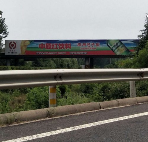 上图:郑尧高速郏县段,河南省中原红饮料有限公司大型广告牌上的“河南省著名商标” 醒目字样。