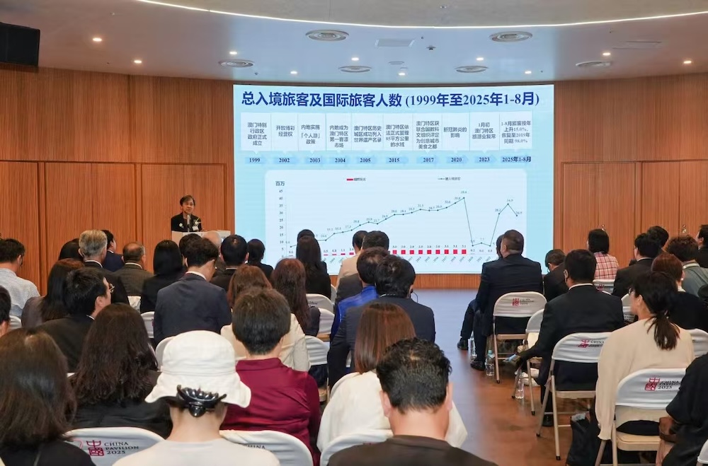 为期三天(10月2日至4日)的澳门活动周以“感受澳门”为主题,推广澳门的世界遗产、非物质文化遗产及大型节庆盛事。活动将中国馆不同展区巧妙串联成一条澳门世遗步行路线,场内设有大三巴牌坊、妈阁庙等地标建筑装置,并透过数字影像、非遗拓印、葡萄牙瓷砖工作坊等丰富互动体验,以及以美高梅驻场演出《澳门2049》醒狮环节为蓝本、专为澳门活动周量身定制的创新醒狮表演,结合葡萄牙土风舞等多元文化展演,充分展现澳门作为“演艺之都”的无限活力,让来自世界各地的访客沉浸式感受澳门独特的城市魅力与人文风采。