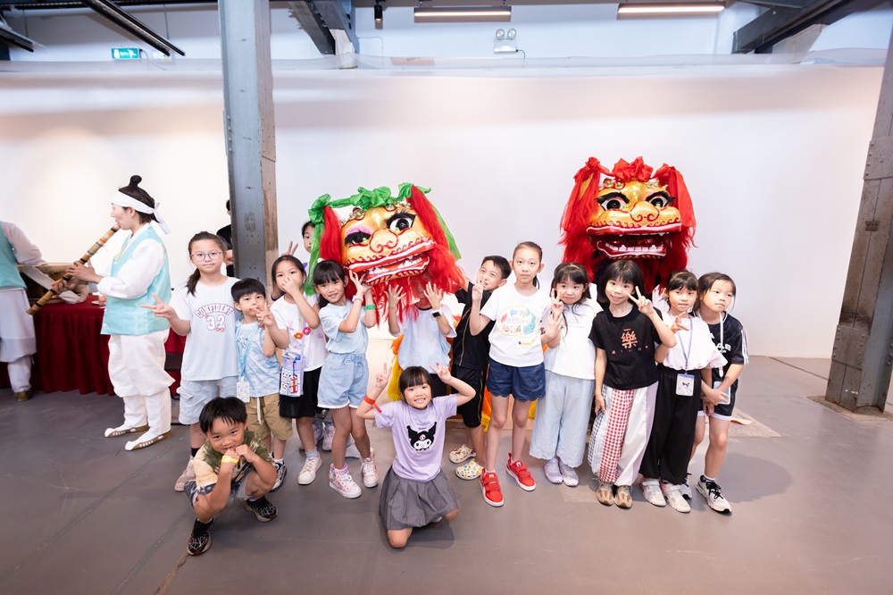 参与“狮艺小学堂”的小朋友与中国湖洲北狮队伍合照。