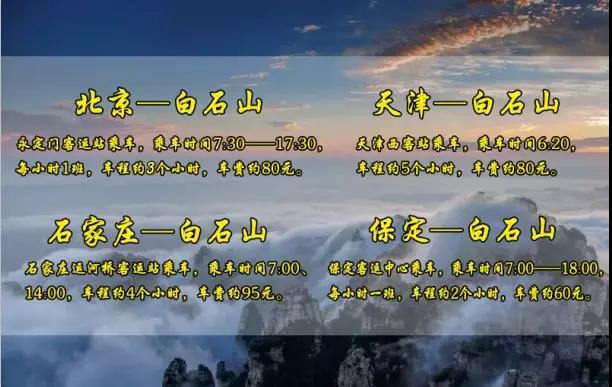 乘坐涞源县至白石口公交车,到白石口下车,即可到达白石山景区。(彭晓振 秦建伟)