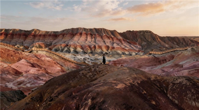 在柴达木盆地一带,丹霞地貌与戈壁相互交织,山体色彩在光线变化中呈现出丰富层次;沿途的一些区域,如彩虹丹霞·星之谷等地,也在这样的自然背景中逐渐进入旅行者视野。山体在阳光下呈现出多重色彩,与高原天空形成鲜明对比,使空间更具层次与张力。